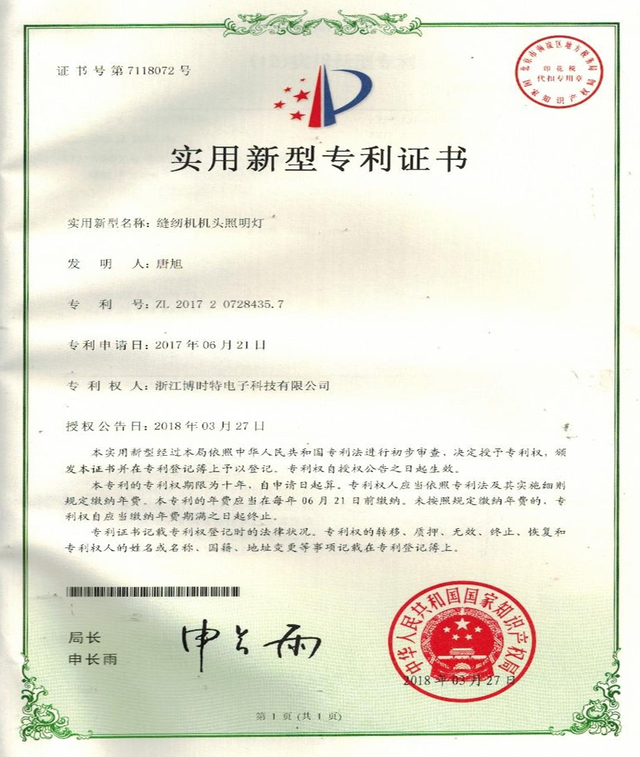 “博時(shí)特” 商標(biāo)注冊(cè)證